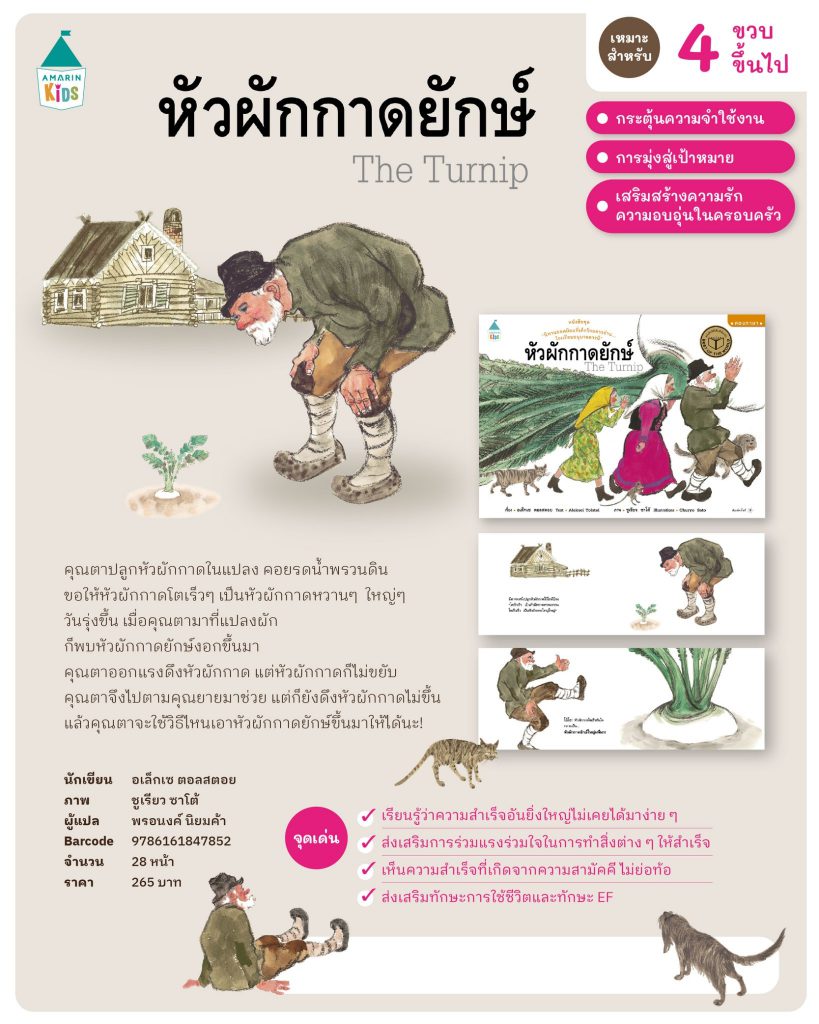 ถ้าอยากส่งเสริมจินตนาการ การคิดแก้ปัญหา และ การมุ่งสู่เป้าหมาย EF Mom แนะนำหนังสือนิทาน EF เล่มนี้เลยค่ะ “หัวผักกาดยักษ์” นิทานสองภาษาสัญชาติรัสเซียที่ ภาพสวย เนื้อเรื่องน่ารัก ที่น่าสนใจคือมีการใช้คำซ้ำในลักษณะนิทานไม่รู้จบ เพื่อเปิดโอกาสให้น้องๆ ได้มีส่วนร่วมในการเล่าเรื่อง เป็นการเพิ่มสีสัน ความสนุกสนาน และความมีชีวิตชีวาให้กับหนังสือได้เป็นอย่างดี