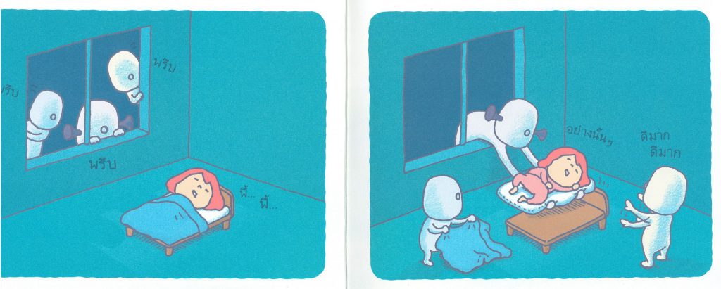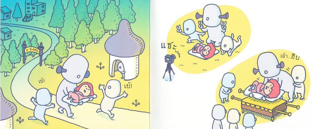 และเพื่อให้น้องสนุกมากยิ่งขึ้นคุณแม่ควรอ่านเรื่องไปตามตัวอักษรและออกเสียงให้ชัดเจน พร้อมทั้งให้เวลาน้องได้สังเกตภาพตัวละครในแต่ละหน้า ชวนสังเกตด้วยการตั้งคำถาม ชวนให้ดู และคาดเดา เช่น ตอนตื่นนอนทรงผมของน้องๆ จะเป็นแบบตัวละครไหมนะ