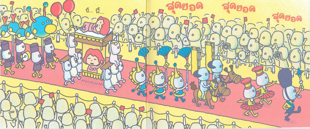 ขณะที่คุณแม่อ่านให้น้องฟังน้องจะกวาดสายตาไปทั่ว ภาพที่เห็นและเสียงที่ได้ยินจะประกอบกันเป็นภาพเคลื่อนไหวในจินตนาการอย่างไม่มีที่สิ้นสุดเลยค่ะ